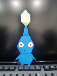 なぜ青ピクミン登場となったのか…。それは、青色の折り紙がそこにあったから…。そんな安直な理由で折り始めたはいいものの、青色の折り紙だけで終わるはずもなく。結局他の色も中途半端に消費することとなった…。ま、別にいいのだがな。
