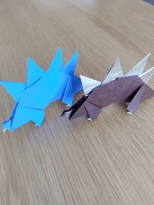今回からは、少し恐竜シリーズをご覧いただこう。何か鶴以外で折れるものはないかと、私もいろいろ探ってはいて、以前恐竜シリーズに手を染めようかと思いつつ、いや、なんかベタすぎる…と思いとどまった経緯がある。