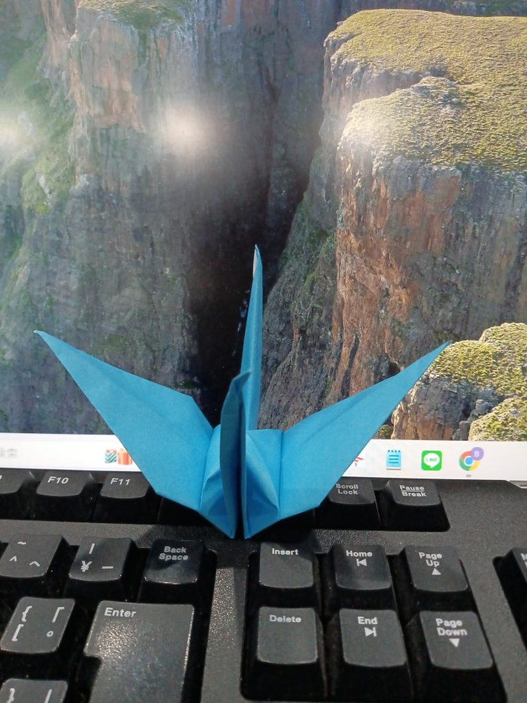 鶴を折るのも、この写真を撮るのも、なんかやっつけ感が出てきてしまっている。わかっている、わかっているのよ、でも、なんか、惰性になってきているのよ。これだけだと、変化もないし、まだゴールの10%にもたどり着いていないし、あ~あ~あ~(情緒不安定)
