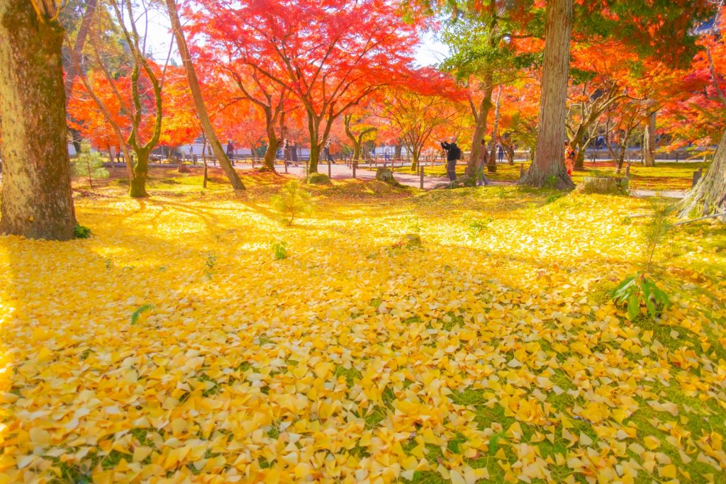 南禅寺は京都を代表する紅葉の名所です。境内全体が赤や黄色に染まり、特に天授庵の紅葉は絶景です。夜間ライトアップも実施されます。