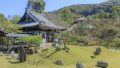 池には太鼓橋がかかっており、橋の上からは庭園全体を見渡すことができます。橋と池、背景の東山の山並みが織りなす風景は、まさに京都らしい美しさです。