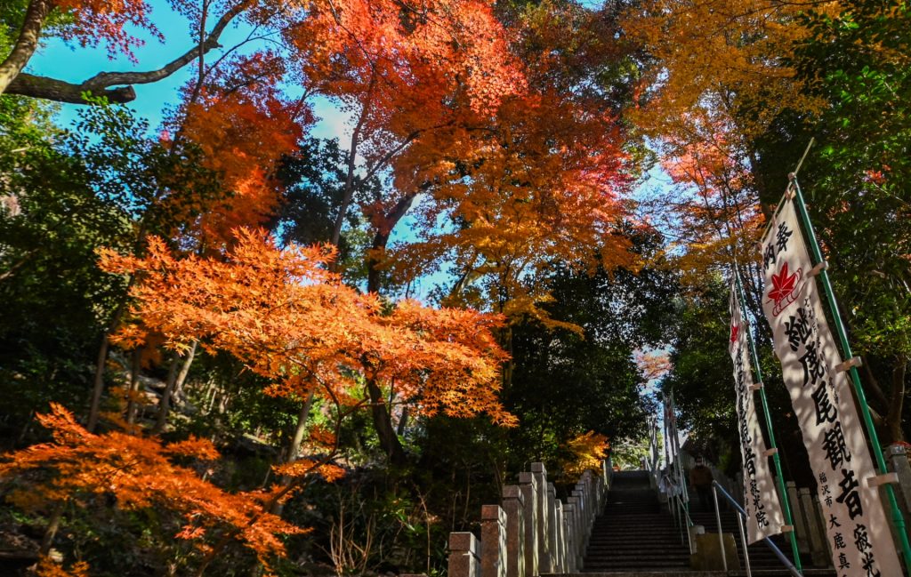 秋には参道が真っ赤に染まり、京都の紅葉名所の一つとして知られています。石段を登りながら、建礼門院もこの道を歩いたのだと思うと、歴史の重みを感じます。